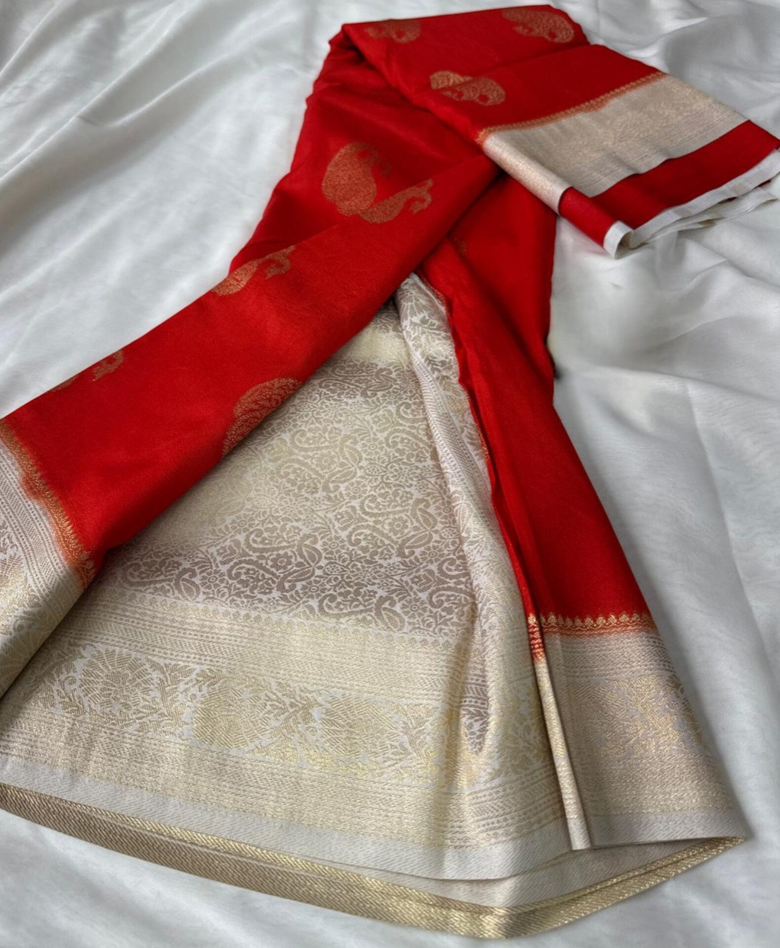 Crepe georgette flow meets mango butta glow ✨ Rich contrast pallu to elevate every drape!