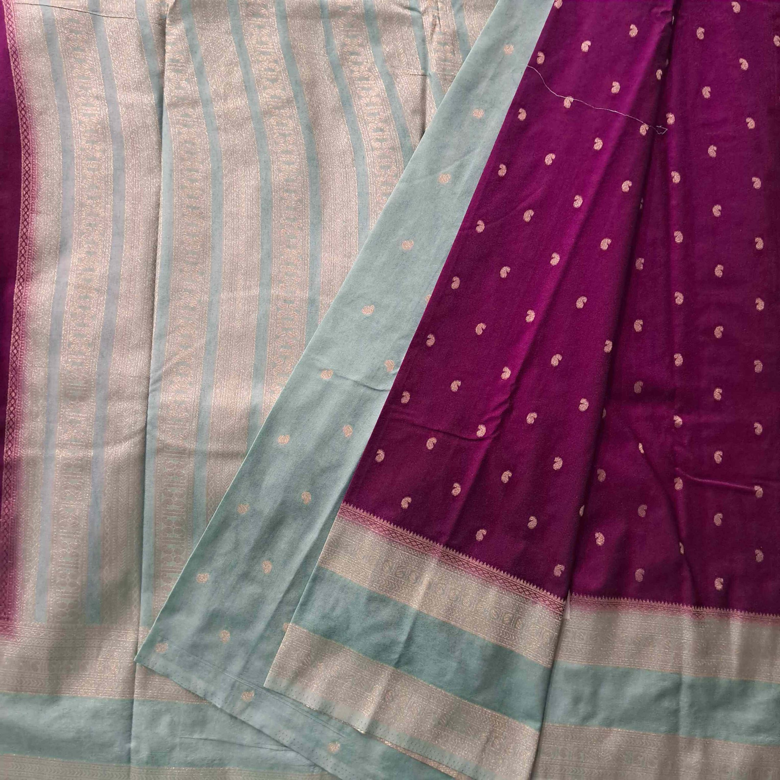 Crepe georgette flow meets mango butta glow with gap border on either side✨ Rich contrast pallu to elevate every drape!