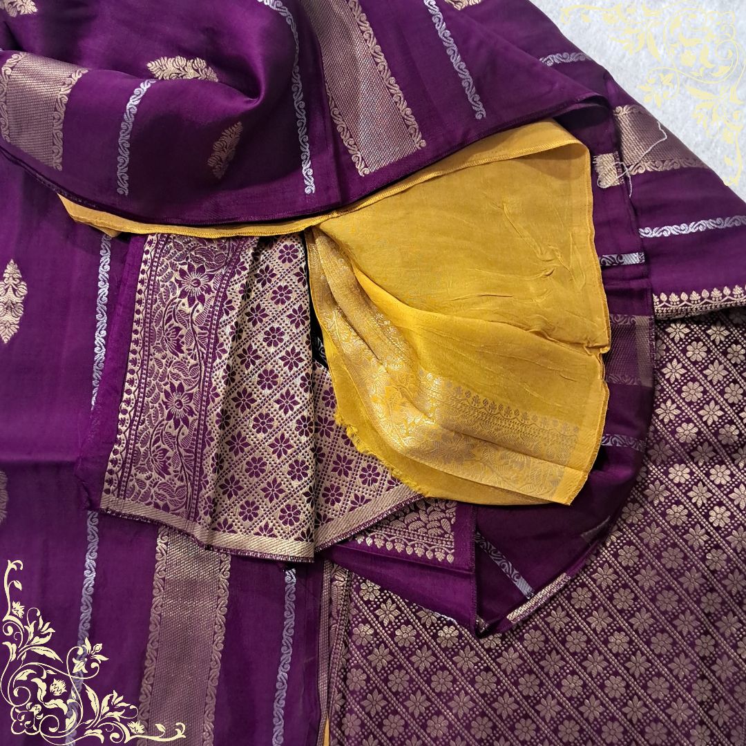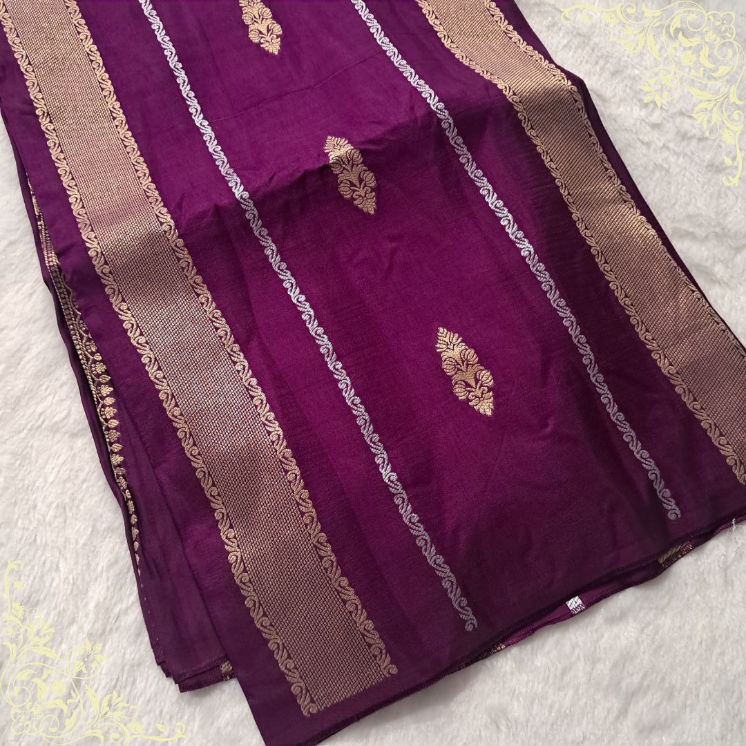 Vertical stripes in contrast dual shaded tone with rich woven pallu in self