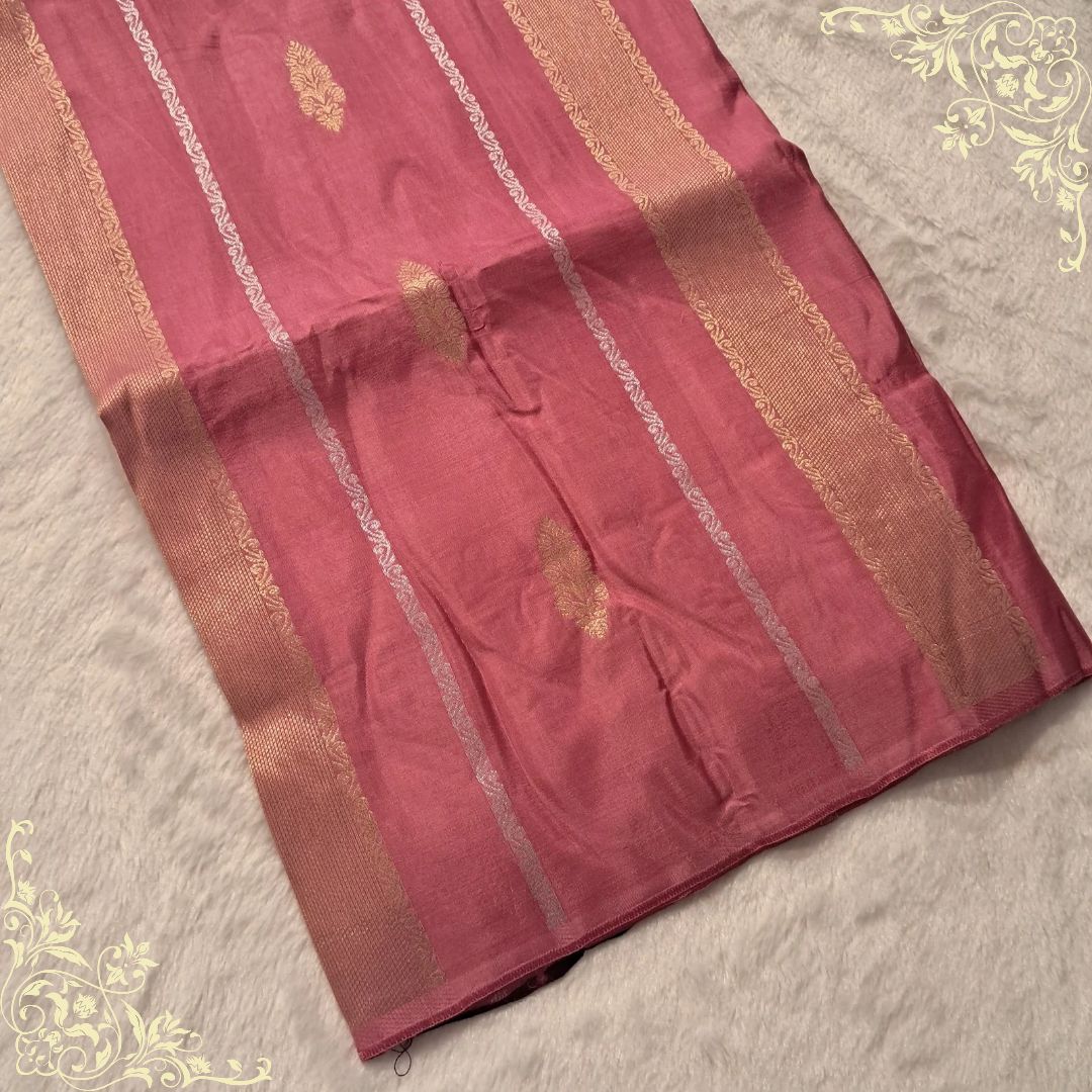 Vertical stripes in contrast dual shaded tone with rich woven pallu in self
